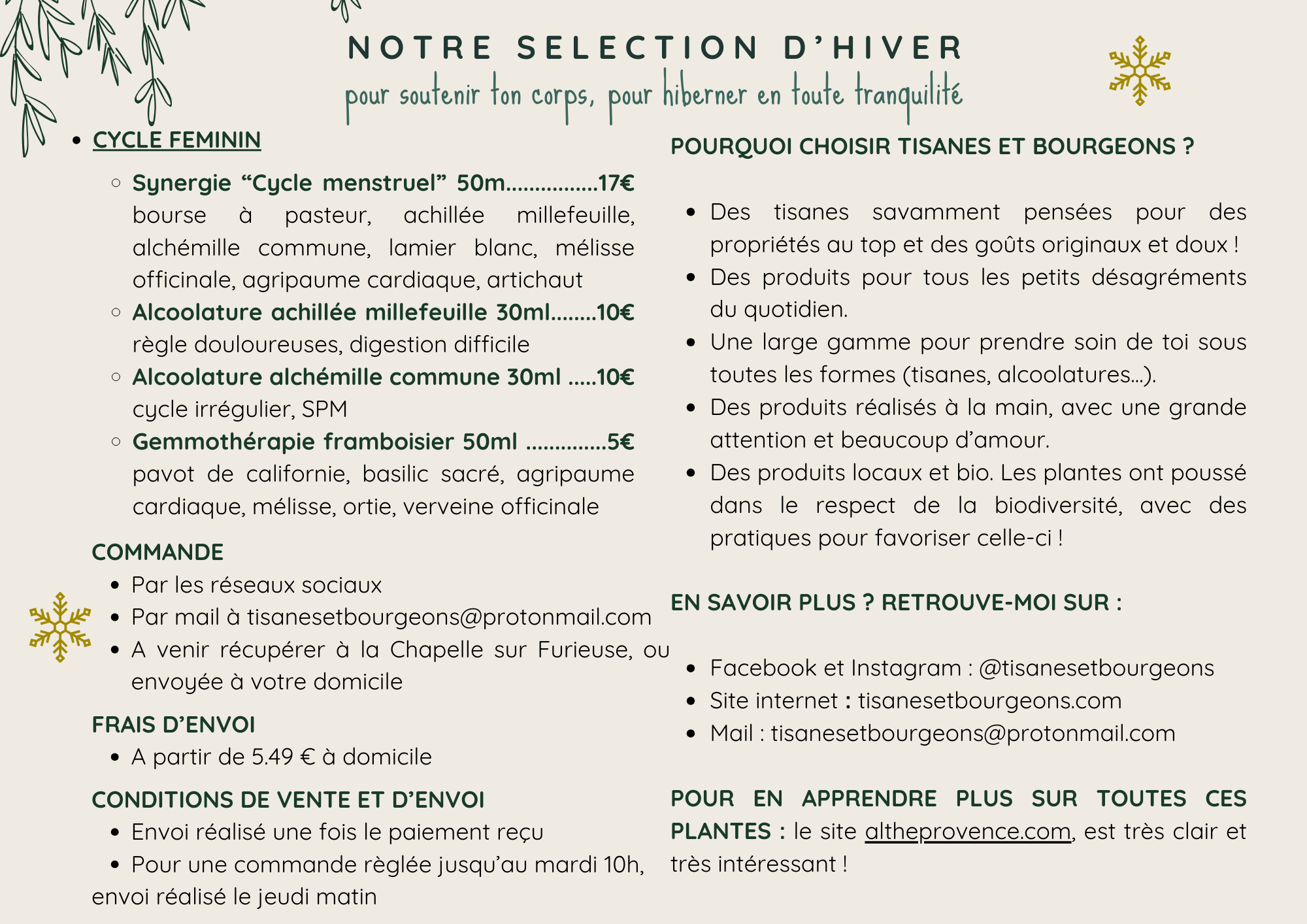 Pour en profiter, envoyez-moi simplement un mail à : tisanesetbourgeons@protonmail.com et je vous prépare votre commande.